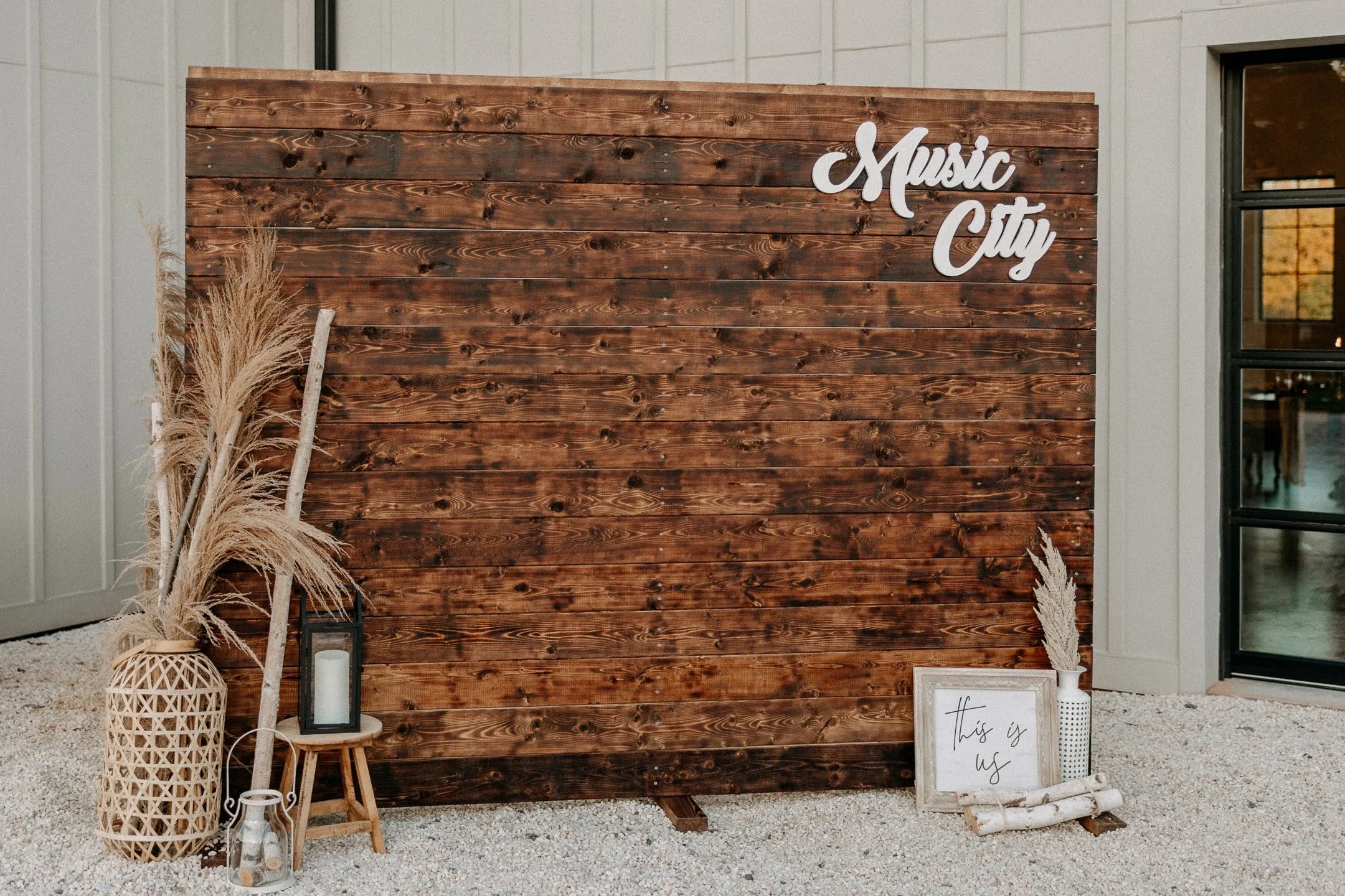 Who said creating a design statement had to be pricey? This groom hand created this unique photo backdrop for his Nashville- themed wedding, and it was absolutely perfect! Also, what a great fun fact to be able to tell your guests that you made it!